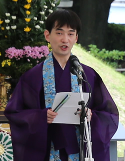 ただ今、皆さまと共にお勤めいたしました「平和を願う法要」にあたり、第2次世界大戦で犠牲になられたすべての方々に対し、衷心より追悼の意を表します。