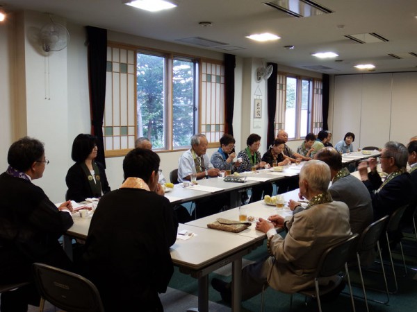 暑い日差しはお盆を境に急激に秋風が吹き、トンボが飛ぶ季節となり秋祭り・収穫の秋へと、何かとお忙しい時期をお過ごしのことと思います。札幌組の実践運動プロジェクトとして、震災後2年続けて実施しました相馬組常福寺境内清掃のお礼参拝として、廣畑住職ご夫妻、総代小黒仁様一行10人の方々が8月20日眞願寺に参拝されました。