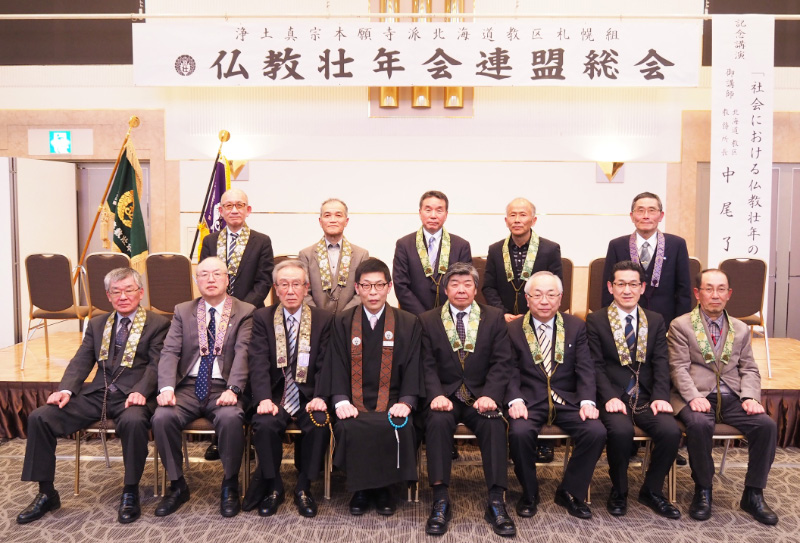 2019年2月23日(土)、「ホテルポールスター札幌」において、北海道教区札幌組 仏教壮年会連盟設立総会および結成祝賀会が開催され、眞願寺壮年会から徳永会長、木村副会長、鈴木副会長、恵美幹事、鈴木幹事、山田幹事、笠羽範夫さん、萩原建興さん、萩原芳昭さん、堀 久雄さん、北喜伸博さん、そして私の総勢12名で参加してきました。