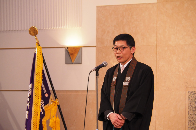 札幌組仏教壮年会連盟結成祝賀会は、連盟副会長に就任した徳永氏が司会を担当され、下記の内容で進行しました。