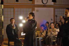 また、眞願寺の曲である、当寺住職作詞・佐々木重昭さんに作曲いただいた『微妙』を皆さんとともに合唱いたしました。最後には多くの拍手をいただき、アンコールを2曲歌っていただき、またのご縁をお願いしました。