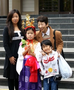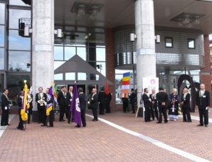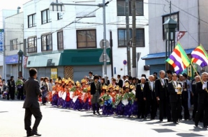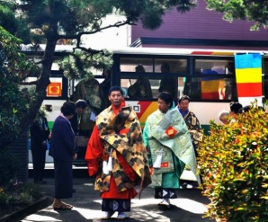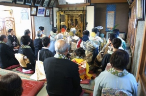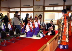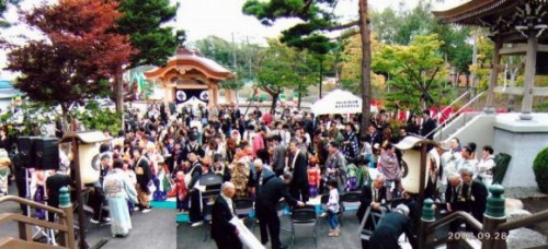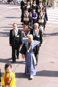 裃の髙間委員長に、正木・安孫子両副委員長、その前に住職長女の礼華ちゃん