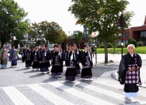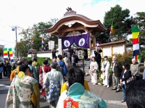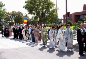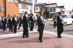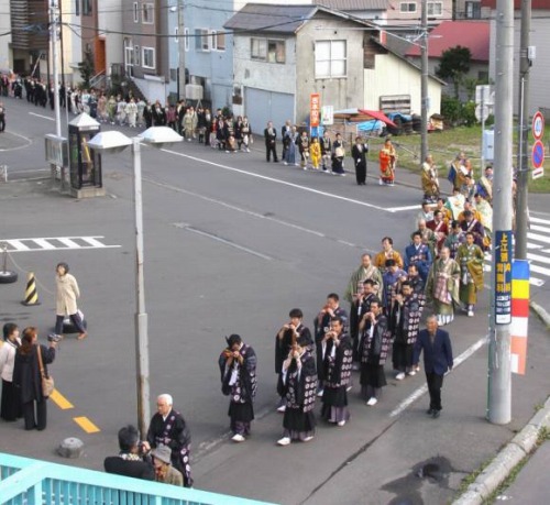 導師当寺住職、笠をもって下さったのは髙間専逸氏、長男郭成氏が続く