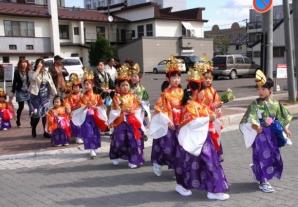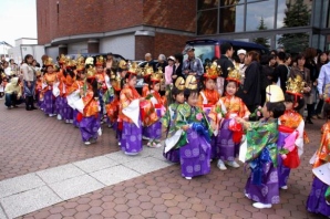 50名のおちごさん、かんむりを落とさないで歩いてね!