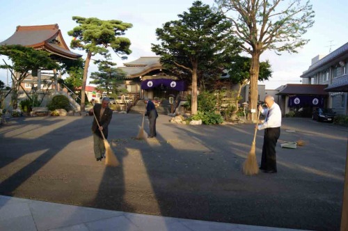 6時に集会鐘(梵鐘)が境内そして近隣に響き、ご法要の1時間前をお知らせいたしました。もうその時間には総代さんは外の掃き掃除、婦人会の皆さんは厨房で朝食の準備と、ありがたいことです。7時の晨朝勤行をすがすがしい思いの中で、皆さんと正信偈をおとなえし、朝のおいしい朝食をいただきました。眞願寺名物の「納豆汁」は本当においしいですね。