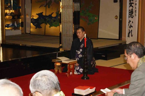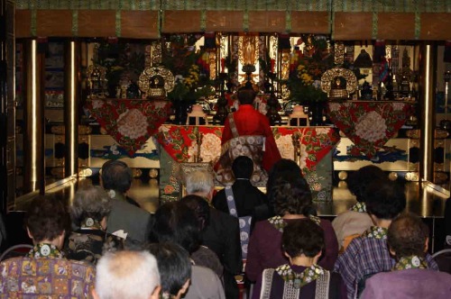 お陰様で、初逮夜をお迎えし、御法中の御出勤をいただき門信徒の皆様、そしておこしいただいた有縁の皆様と、ご恩に感謝し、正信偈をとなえさせていただきました。今日は朝から雨模様で風も強く、足もとも悪い中、100名以上の皆様の参詣をいただきました。ご法要に引き続き御伝鈔の拝読、そして永江竜心先生のご法話をいただきました。