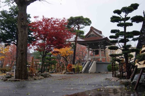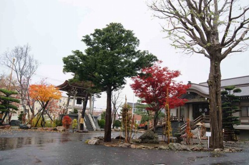 寒い朝を迎えました。つめたい雨と風の中、色づいた葉が境内をまっています。予報では午後から雪が降るようです。今月14日からは秋の永代経ですが、ご法要が終わるまではひどくならなければと思っております。どうぞ皆さんご参詣下さい。