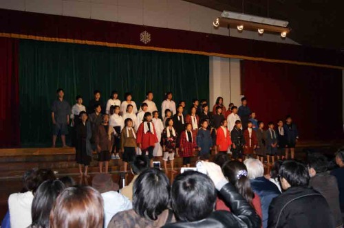 今日はわが子の学芸発表会でした。江別小学校の発表会には、毎年多くの地元の方々もおいでになります。今年はわが子の最後とあって、ビデオとカメラを夫婦分担してハラハラドキドキ~ウルウルしながら鑑賞しました。今年の6年生は江戸時代の身分制度の悲劇で「ベロだしチョンマ」でした。難しい表現が大切な劇ですが、とてもよかったですよ。感動しました。