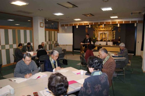 札幌組の15期連研第4回目が11日午後3時より眞願寺で行われました。今回のテーマは「葬儀」でした。4日前に私に講師依頼があり、急なことではありましたが、受講者の皆さんと学ばさせていただきました。