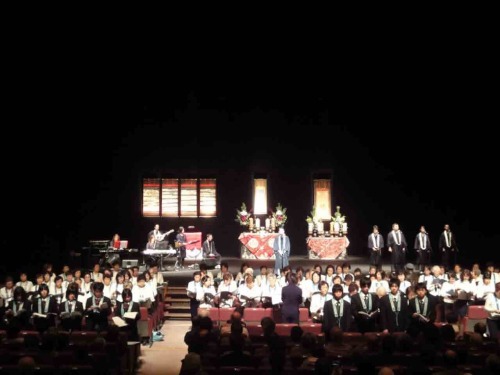 寺院の住職方々が、普段なれないステージで、ご法要をはじめ、歌をまじえた朗読劇など、準備から今日まで、反省点も多くありましたが、なんとか終了しほっとしています。