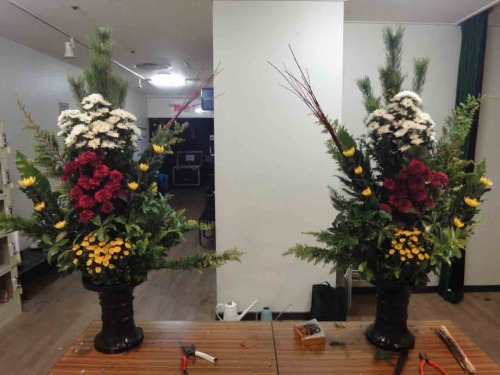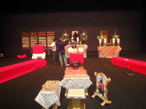 明日は午後2時より札幌組の親鸞聖人750回大遠忌法要の集いが、札幌市教育文化会館大ホールで行われます。今日はその準備で、眞願寺からも沢山の仏具を運び、お荘厳させていただきました。大きな会場なだけに、仏花をいけるのも難しく、納得は出来ませんでしたが、とりあえずは皆さんと一緒に夜まで準備にかかりました。