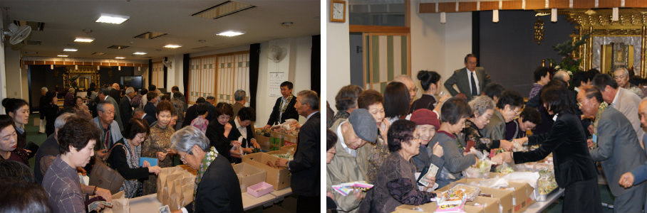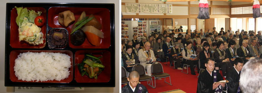 3日目、6時に集会鐘(梵鐘)が境内そして近隣に響き、ご法要の1時間前をお知らせいたしました。もうその時間に総代さんは外の掃き掃除、婦人会の皆さんは厨房で朝食の準備と、ありがたいことです。7時の晨朝勤行をすがすがしい思いの中で、皆さんと正信偈をおとなえし、朝のおいしい朝食をいただきました。眞願寺名物の「納豆汁」は本当においしいですね。そして10時より満日中法要をお迎えさせていただきました。昨日に比べますと参拝者が少ないのが残念ですが、「宗祖讃仰作法」により声たからかに、お勤めさせていただきました。皆様のお陰様で御満座をお迎えし、感涙の中ご法要後にご法中皆様に御礼言上申し上げました。今年もありがたく皆様と尊い3日間をすごさせていただきました。