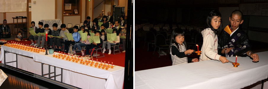 夜の灯火のつどい~初夜法要~は子供たちもたくさん集い、「金のしか」のお話しを永江先生より聞かさせていただきました。