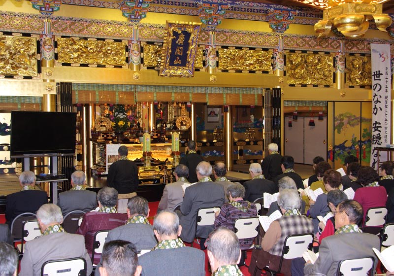 住職と髙間専造責任役員のご挨拶では、昨年は親鸞聖人750回大遠忌法要の年でありましたが、3.11の大震災の大災害、そして原発事故による多大な人災や、各地でも災害がみられ、いまだ悲しみの中で過ごしている方がたくさんおいでになられることを申し上げました。