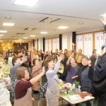 総会後の新年会では安孫子建雄総代の乾杯によりはじまり、婦人会役員で作られた『豚汁』などがふるまわれ、出席されたすべての方に景品が抽選で贈呈され、最後に住職賞(大遠忌記念切手や色紙・法要記念華芭
