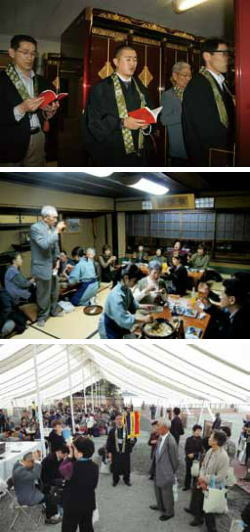 御影堂はその大きさもさることながら、お堂をはみ出すほど置かれている椅子の多さに驚きでした。この日も午前中だけで約3000人の参拝者があったということです。大遠忌法要は宗祖讃仰作法(音楽法要)で営まれ、大勢の参拝の皆様方とともにお勤めさせていただきました。