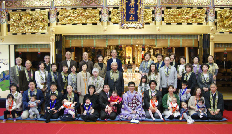 本年も初参式が4月21日、7名の新生児をおむかえし、午前11時より行われました。式中は静かな赤ちゃんもいましたが、7名も集まると、そのお兄ちゃんやお姉ちゃんも一緒にお参りしていただき、泣く子もあり、さわぐ子もありと、にぎにぎしく式は進み、参詣いただいた皆さんのほほえみのこぼれる中で、いのちのお誕生をお祝いしました。