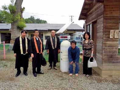佐々木氏はNPO 法人を立ち上げ、除染作業など、子どもを守る活動を行っている。お寺に隣接している幼稚園の園庭近くに線量測定器が設置されていた。隣接する家では除染作業が行われていないため、線量も高くドラム缶に水をはり、防御しているそうだ。