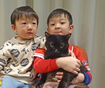 11年前、その頃働いていた日高郡新ひだか町静内。立ち寄ったセブンイレブンで、目やにをいっぱいつけていた子猫を拾いました。逃げもせず、大人しく夫に抱っこされ、そのまま動物病院へ。そこから我が家の子になりました。その後、住まいが変わる度、車にも電車にも飛行機にも乗ってずっと一緒です。6年前、長男・朔(さく) が生まれ、プシュはお姉ちゃんになりました。赤ちゃんとの暮らしは大変。毛を引っ張られたり、納豆だらけの手で撫でられてもじっとしているプシュ。2年前、次男・月希(つき) が生まれ、プシュはさらに賑やかになった家の中で、静かな場所を探しては寝る毎日です。お気に入りはぽかぽかの玄関の床に横たわること。人間にすると60歳。1年前程から皮膚炎になり、なめすぎてお腹の毛がなくなってしまいましたが、子どもたちも私も、穏やかで優しいプシュに助けられる毎日です。いつもありがとう!(山口早希 記)