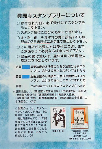 - 金賞…重要法座8法要のうち5法要は必ずスタンプし、合計30座以上スタンプされた方